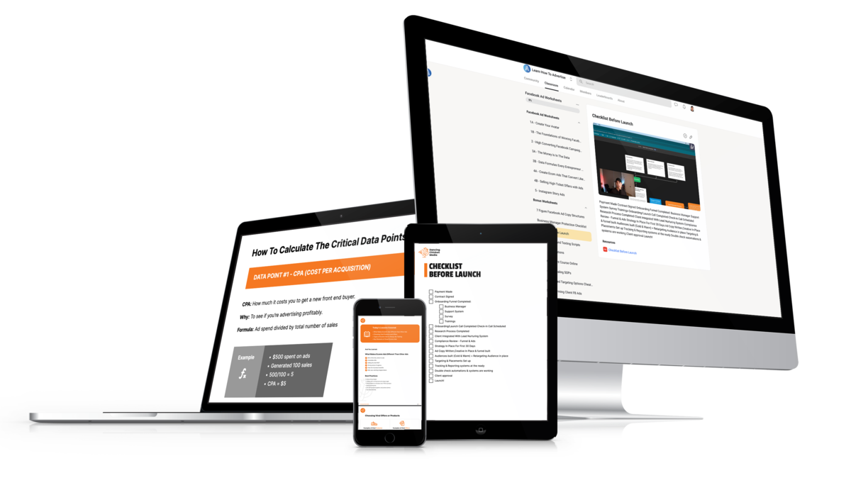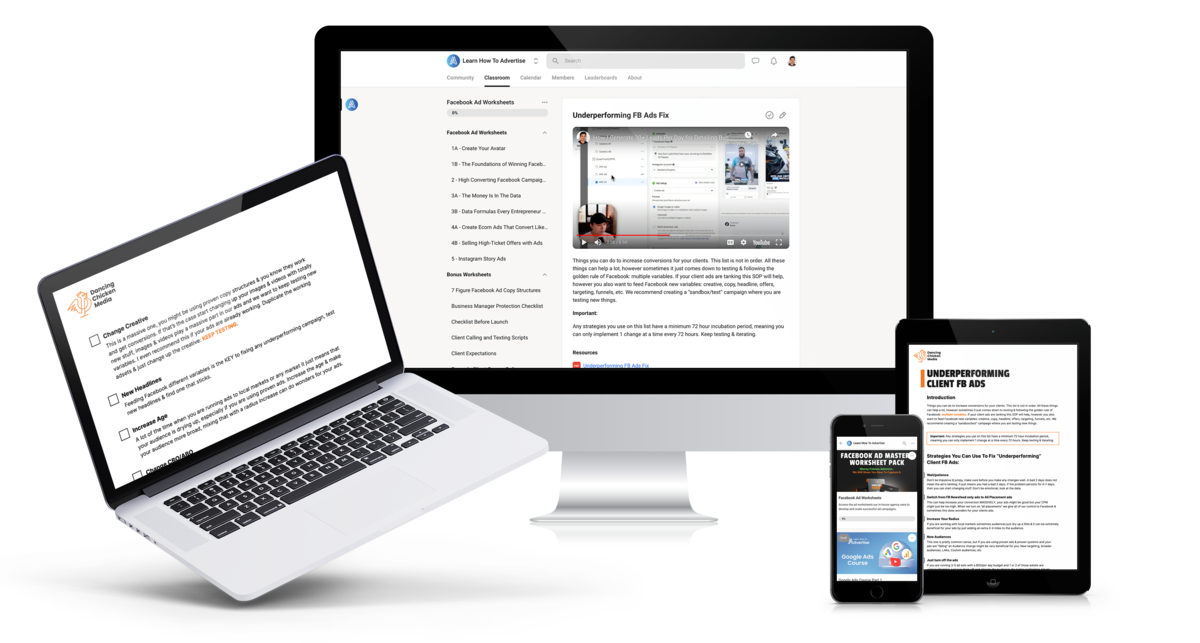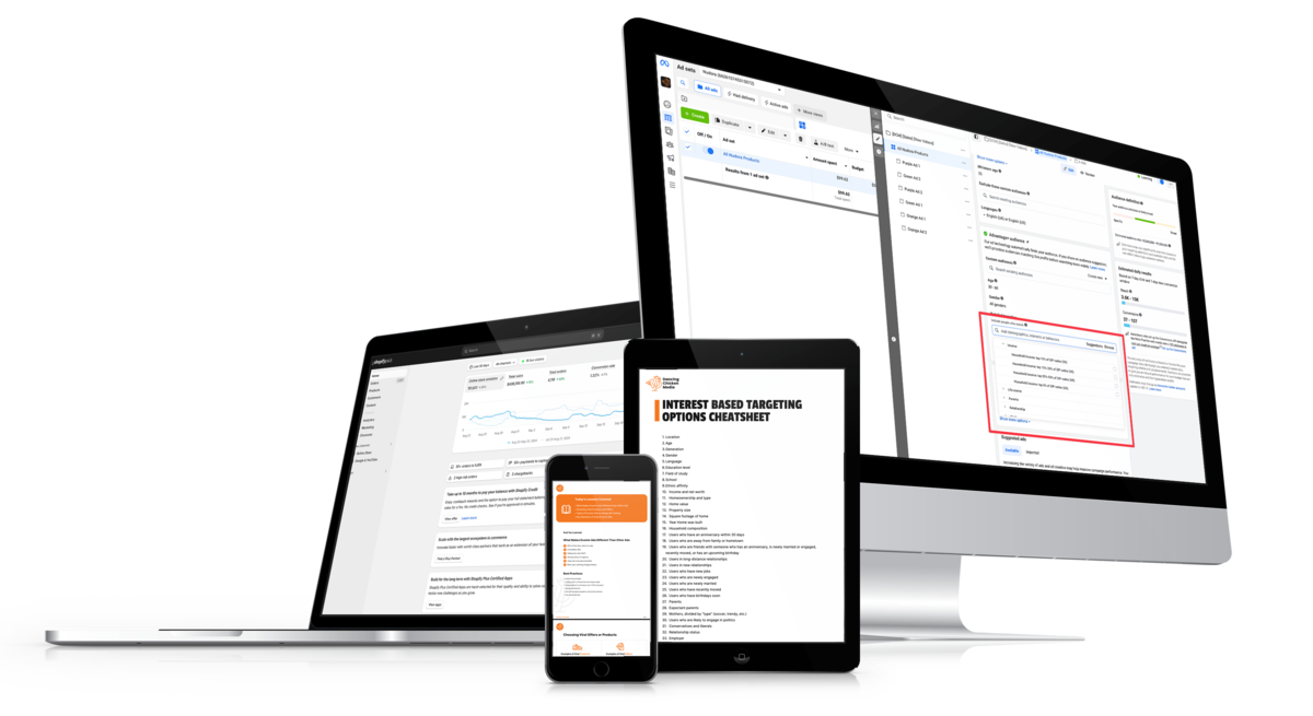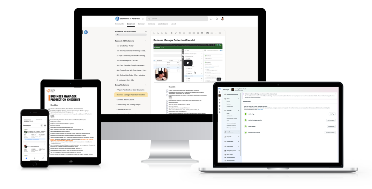 Our signature bundle that gives you step-by-step guidance to create, launch, and scale your own high-converting ads on Facebook and Instagram. Learn how to target the perfect audience, craft irresistible offers, write copy, and more!